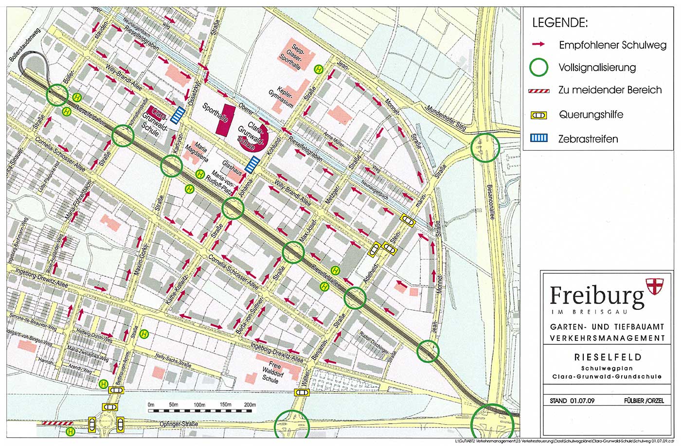 Der Schulwegeplan ist die dokumentierte Empfehlung überprüfter und geeigneter Schulwege, als Grundlage für einen sicheren Schulweg. Der Schulwegeplan wurde mit den Straßenverkehrsbehörden und der Polizei abgestimmt.